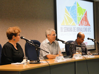 A III Semana de Jornalismo da Universidade Federal do Ceará encerrou-se nessa sexta-feira (13) com o debate acerca da cobertura de pautas ambientais. A mesa foi composta pelo jornalista Souto Filho, repórter do caderno O Estado Verde (O Estado do Ceará) e pelos professores Ilza Girardi (Universidade Federal do Rio Grande do Sul – UFRGS) e Edgard Patrício (UFC), na figura de mediador.
