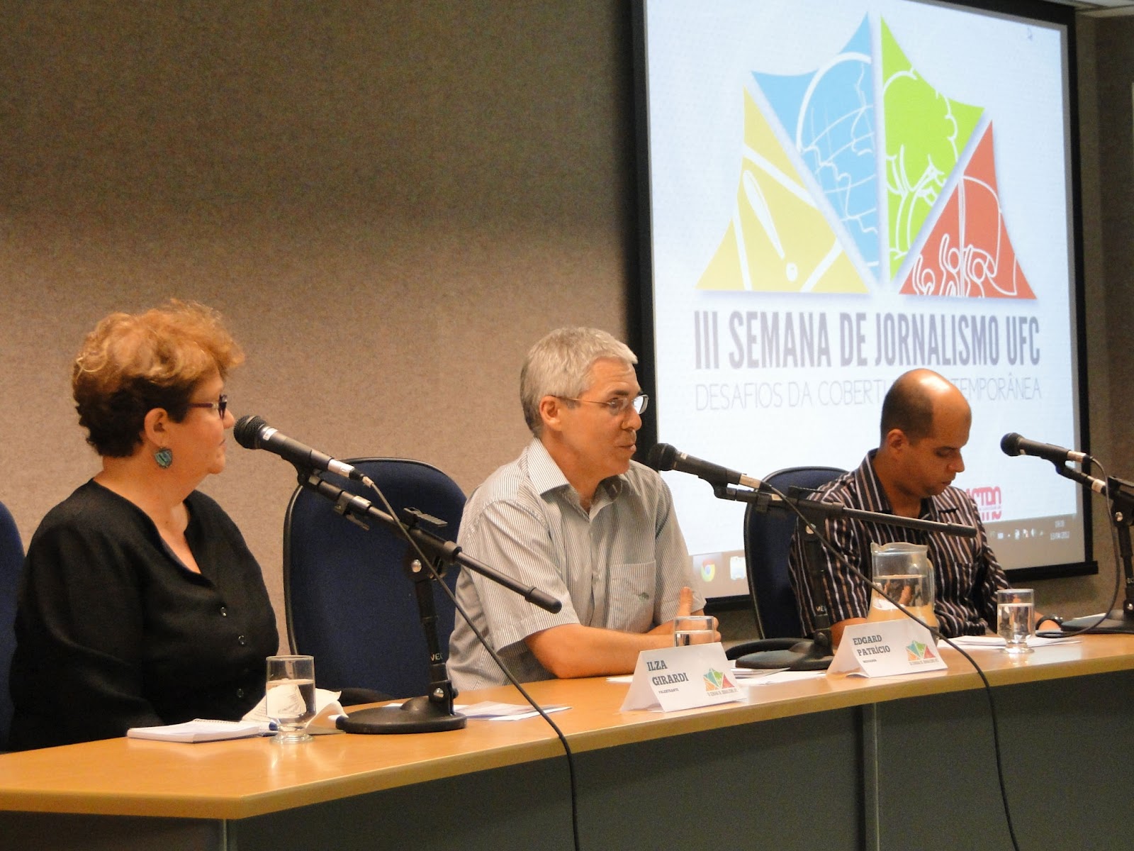 A III Semana de Jornalismo da Universidade Federal do Ceará encerrou-se nessa sexta-feira (13) com o debate acerca da cobertura de pautas ambientais. A mesa foi composta pelo jornalista Souto Filho, repórter do caderno O Estado Verde (O Estado do Ceará) e pelos professores Ilza Girardi (Universidade Federal do Rio Grande do Sul – UFRGS) e Edgard Patrício (UFC), na figura de mediador.