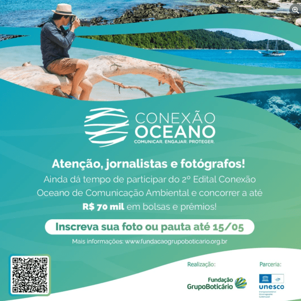 Ainda dá tempo de fazer sua inscrição para o 2º Edital Conexão Oceano de Comunicação Ambiental, uma iniciativa da Fundação Grupo Boticário, em parceria com a COI-Unesco!